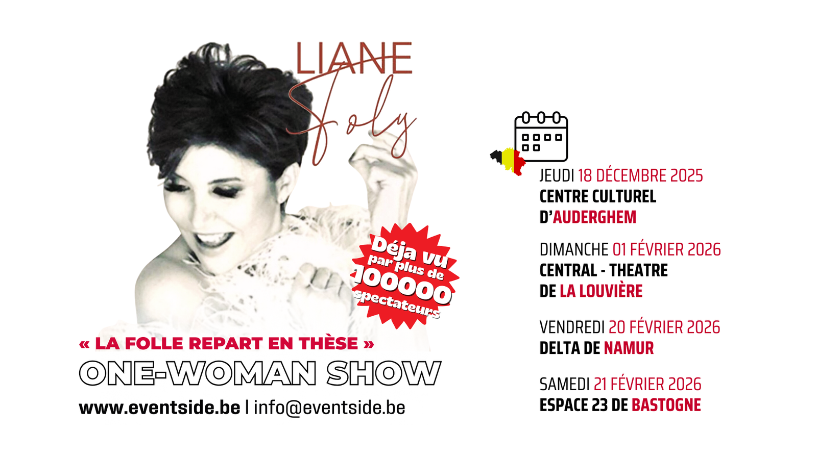Après son triomphe à Paris, Liane Foly revient sur scène avec son one-woman show “La Folle repart en thèse”, déjà vu par plus de 100 000 spectateurs.