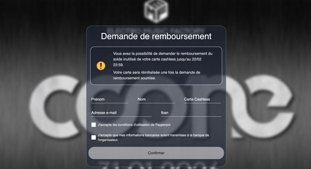 Remboursement du solde se trouvant sur votre carte CASH LESS / COONE 2026 CINEY EXPO